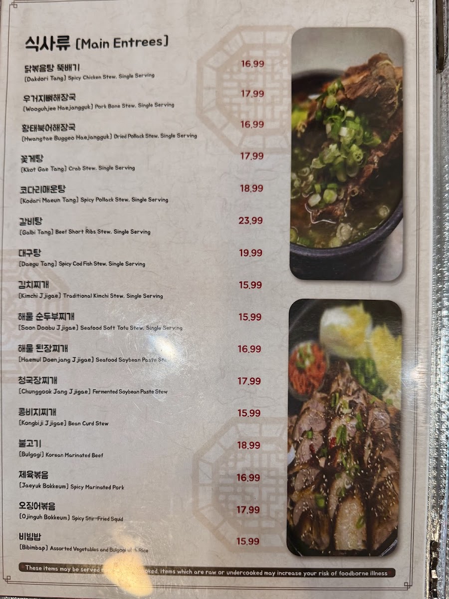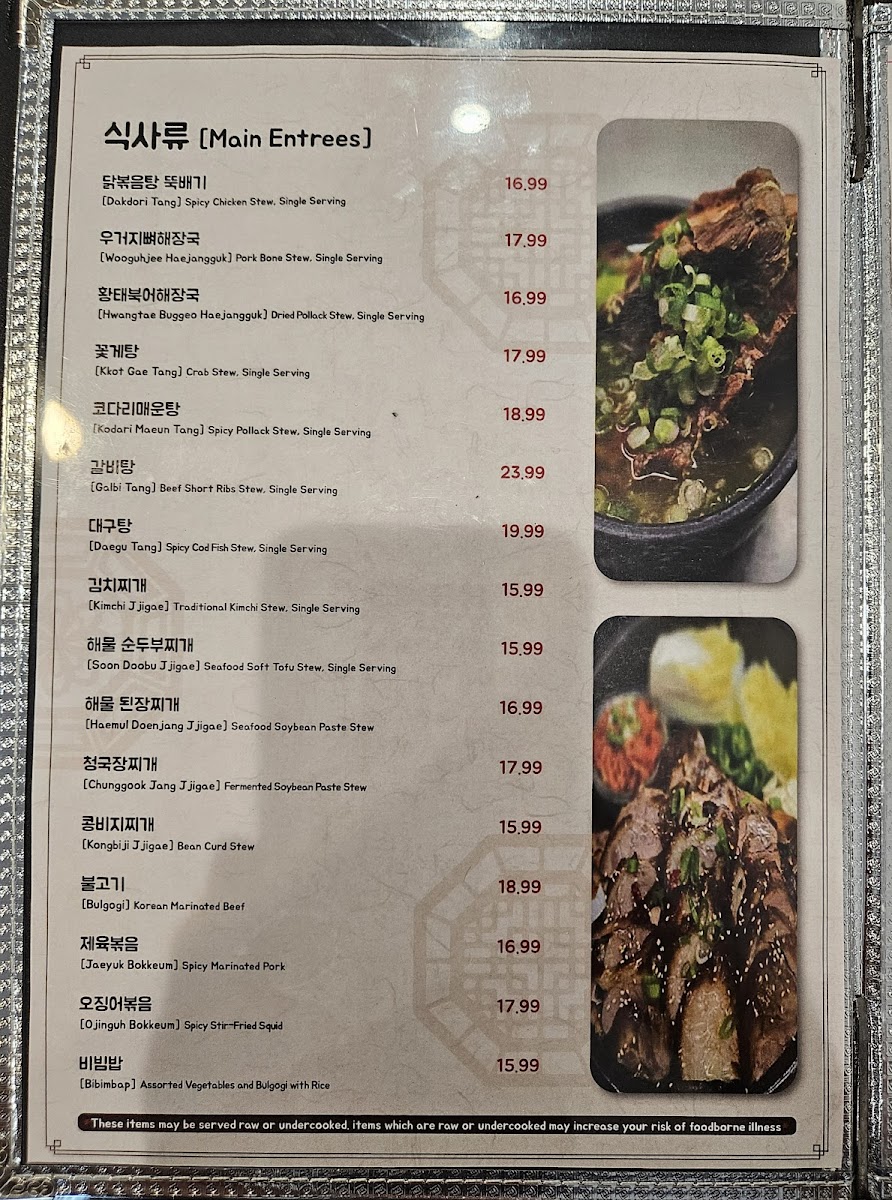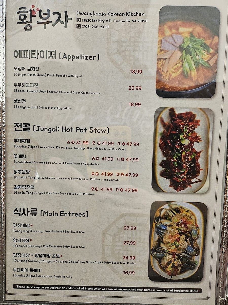 Hwangbooja Korean Restaurant Menu