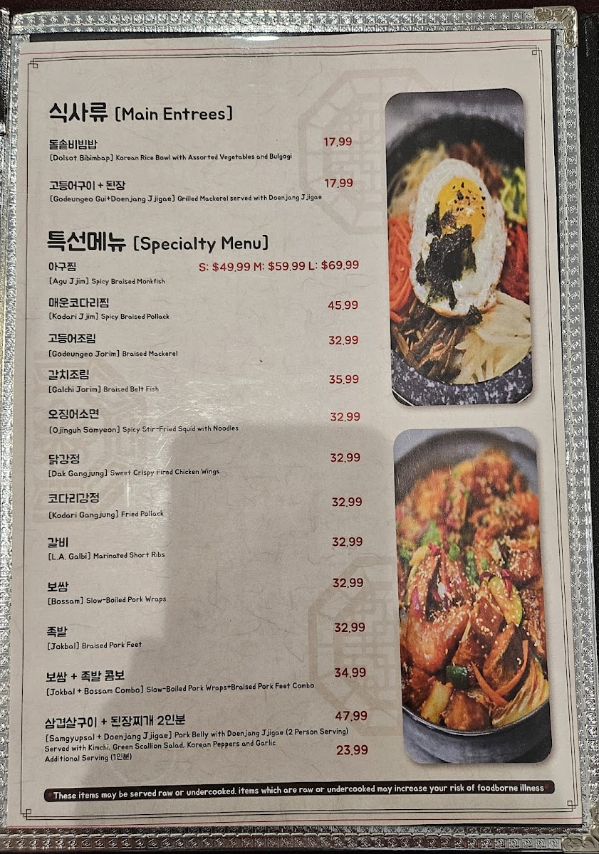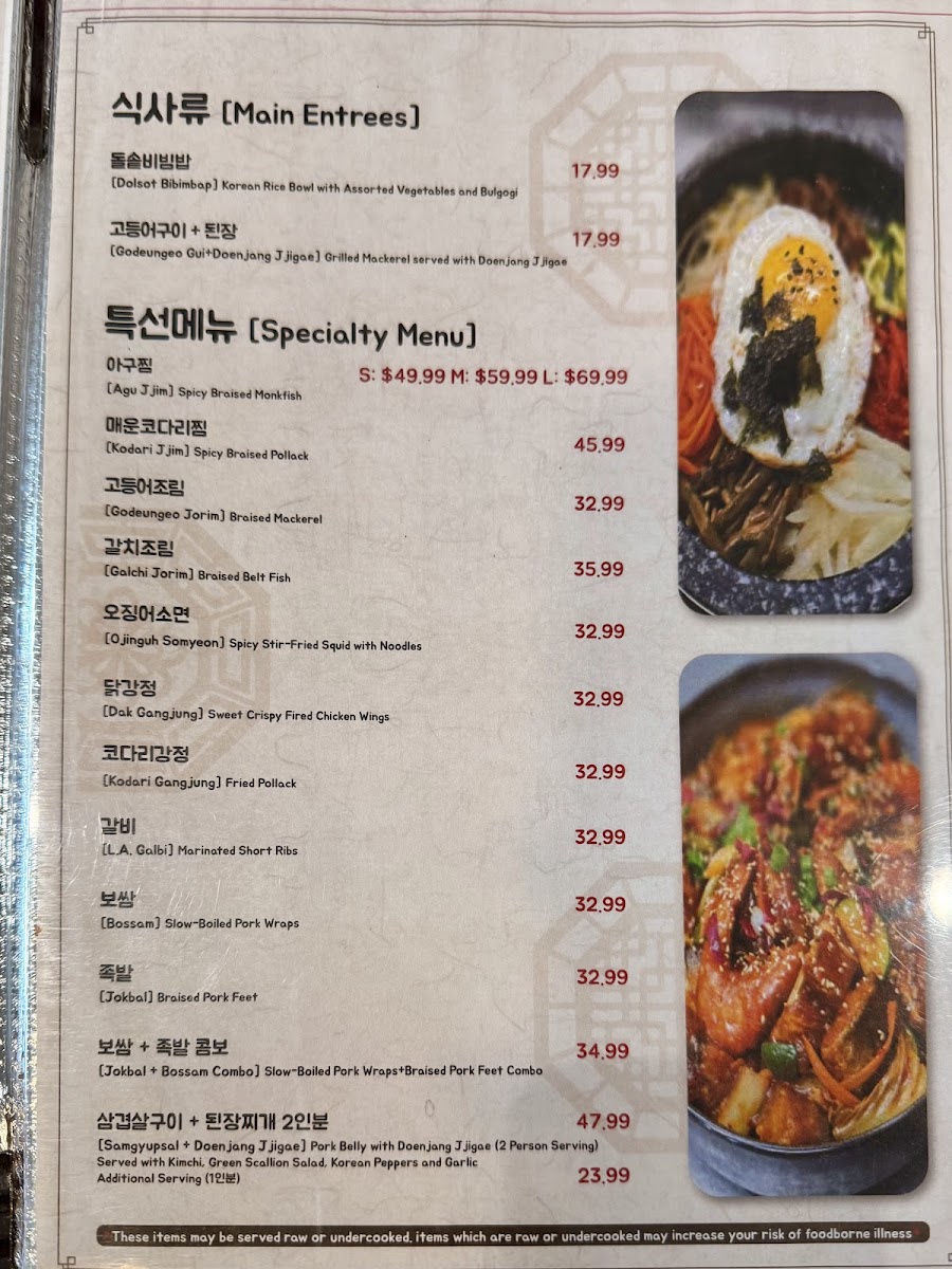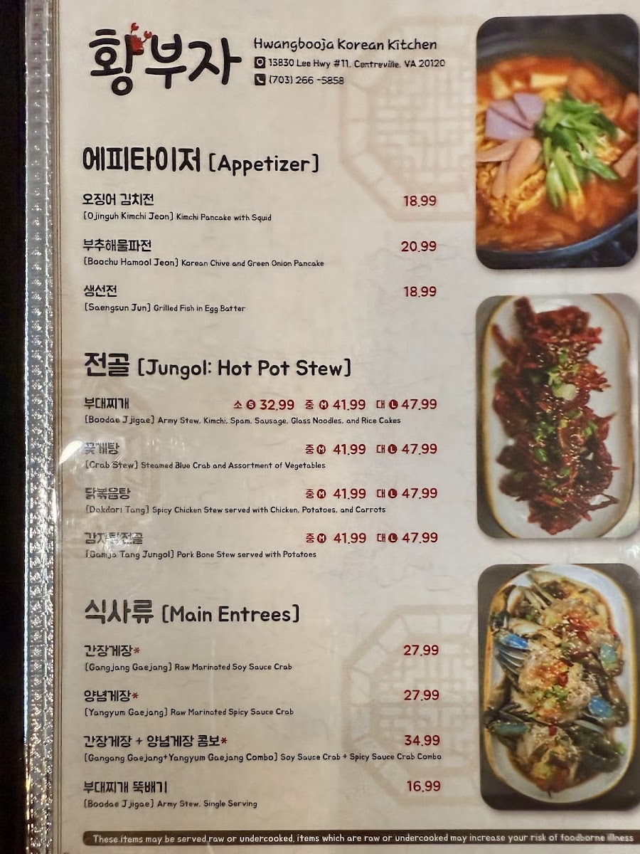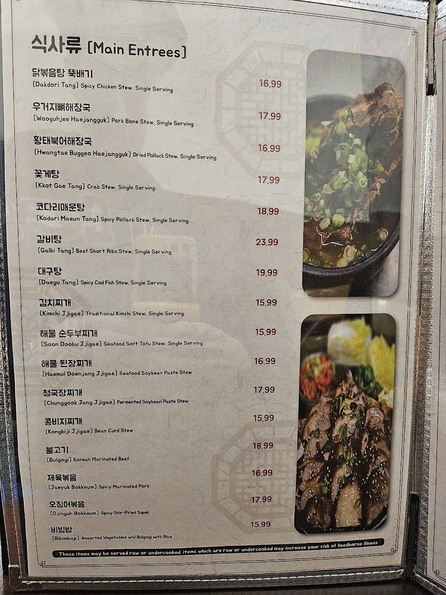 Hwangbooja Korean Restaurant Menu